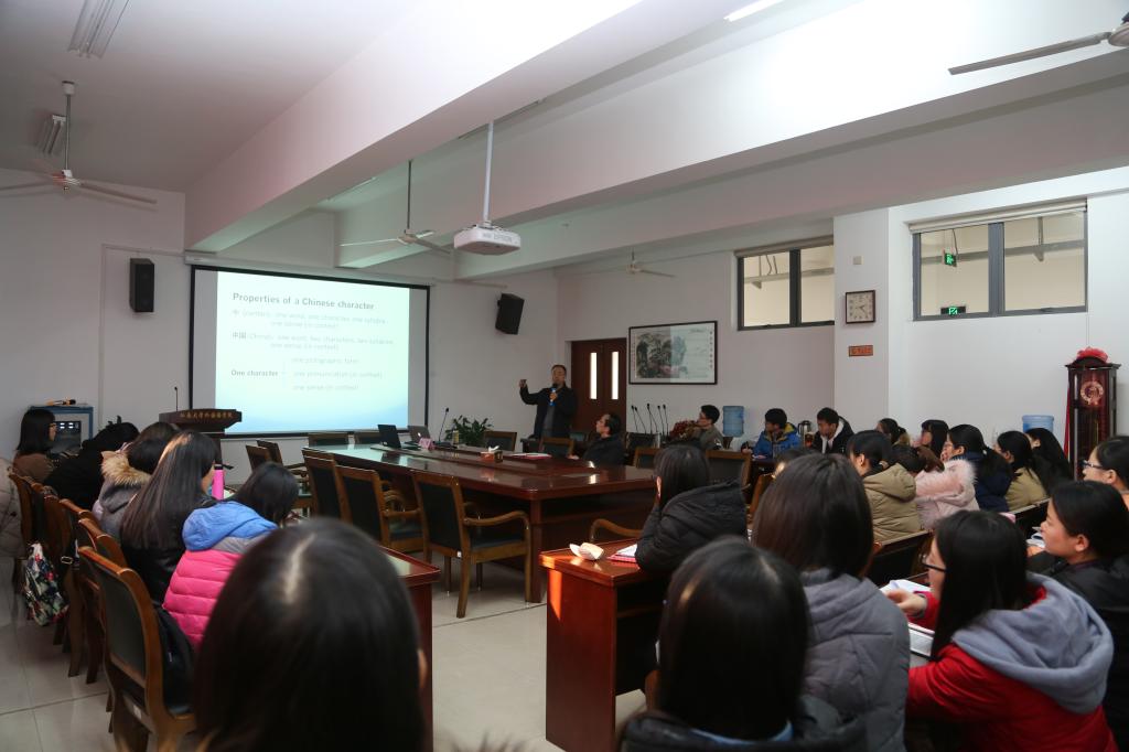 2016年12月14日下午,蘇州大學王軍教授在文科樓A349會議室為我院師生作了題為“生態(tài)語言學視角下的漢語疊加語研究”的學術講座,講座由方文開教授主持。