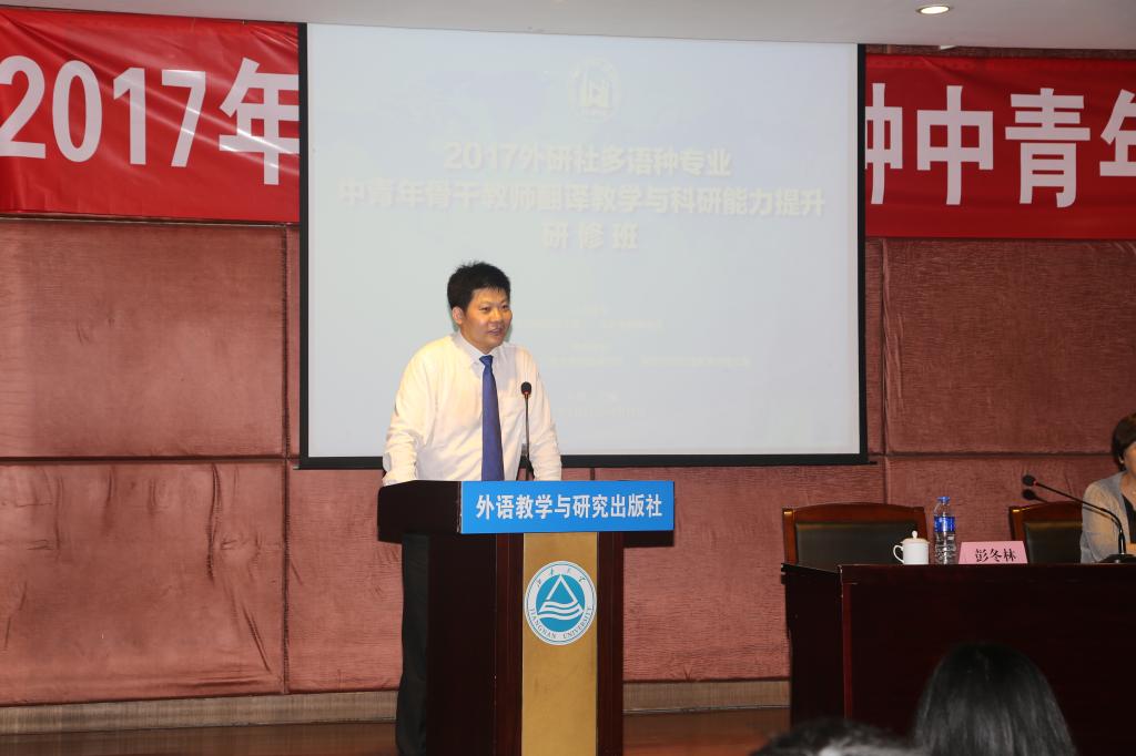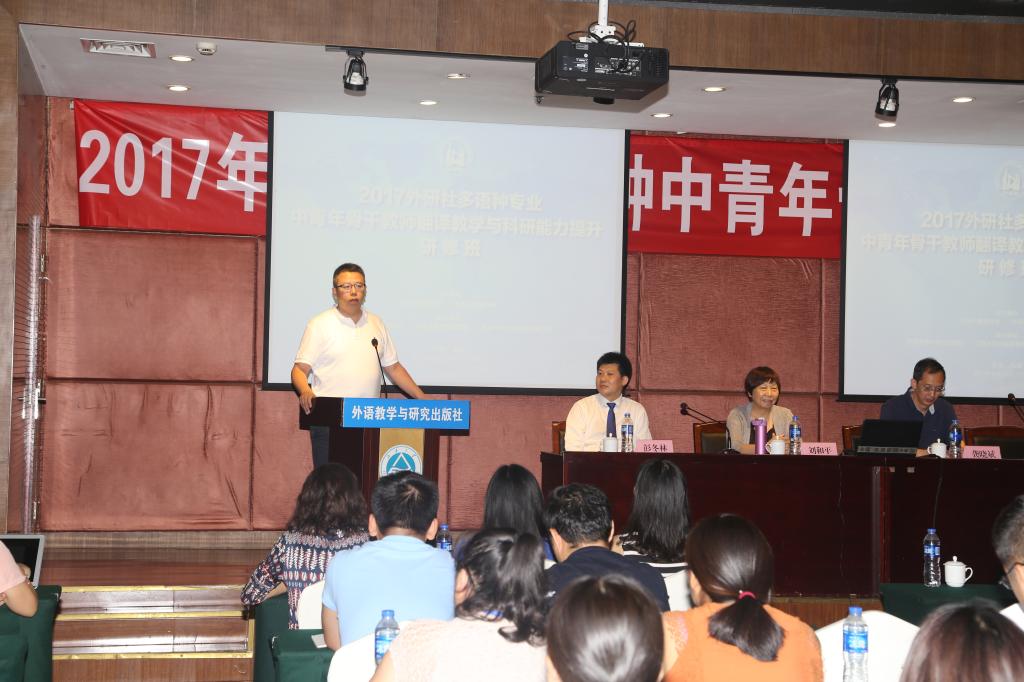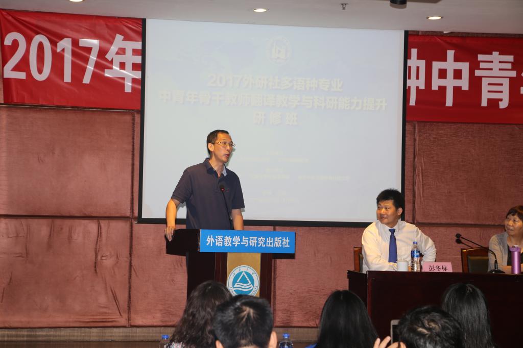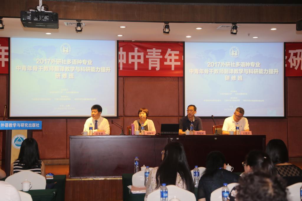8月15-20日,由北京外國語大學與北京市翻譯協會主辦,外語教學與研究出版社與我校外國語學院承辦的2017年高等學校多語種(日語、韓語、法語、德語、俄語、西班牙語、意大利語、阿拉伯語、越南語)中青年骨干教師翻譯教學與科研能力提升研修班在我校長廣溪賓館落下帷幕。這次研修班是在國家“一帶一路”倡議全面實施的大背景下,為提升多語種,尤其是非通用語種教師教學與科研能力,進而服務于國家多語種人才的培養來響應國家戰略而采取的針對性舉措與有效嘗試。