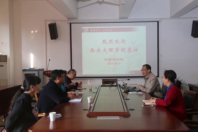 2017年10月31日,西安文理學(xué)院外國(guó)語(yǔ)學(xué)院袁衛(wèi)敏院長(zhǎng)一行四人來(lái)院學(xué)習(xí)考察。