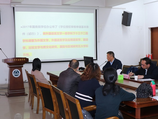 講座伊始,王教授從“頂天”、“立地”兩個原則切入,指出學科建設既要服務國家戰略、深入學科前沿,又要服務地方建設、考慮社會需求,強調學科建設必須滿足“符合當代科技發展趨勢”、“符合國家經濟和社會發展的需要”、“有較好的建設基礎”和“能夠通過學科交叉融合,形成新的學科方向和特色來帶動相關學科發展”四個要求。接著王教授結合《新文科建設宣言》和《研究生教育學科專業目錄》等資料,對外語學科的發展歷程及其內涵的調整進行了回顧,闡釋了將區域國別學設立為一級學科的重要性。王教授指出,學科建設包含學科定位、學科隊伍、科學研究、人才培養等諸多要素,反映了高等學校的辦學實力與核心競爭力,因此必須突出特色,做到“人無我有,人有我強、人強我新”。