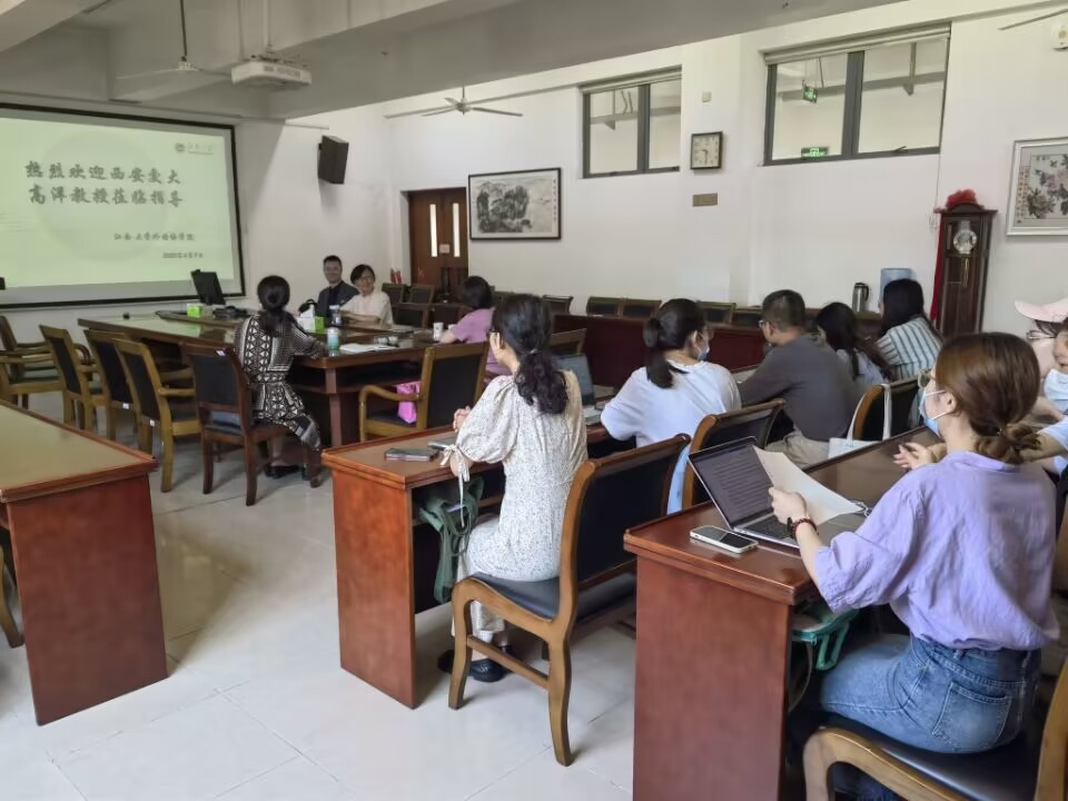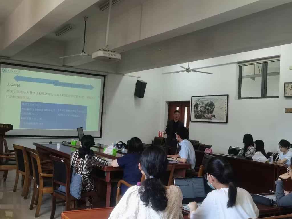 6月9日上午,西安交通大學高洋博士應邀為外國語學院的師生講座,題為“社會文化論視域下高校青年英語教師多元身份發展研究”。外國語學院副院長顧琦一教授主持,張鵬教授點評,外國語學院各系部的老師和不同年級研究生聆聽講座,并做互動交流。