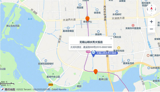 飯店距無錫站10公里,距無錫東站24公里,飛機場20公里,由312國道、京滬、滬寧、寧杭、錫宜高速公路經太湖大道直達或經市內快速內環直達。
