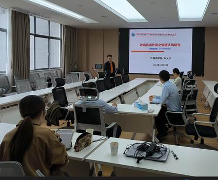 2024年10月15日下午,學院在A349會議室舉行了2024年教育部人文社科研究規劃基金項目開題報告會。學院邀請了王金安教授作為評審專家對朱義華老師今年主持立項的教育部項目—“政治話語外譯之情感認同研究”進行開題評審與指導。本次開題會議由學院副院長張鵬主持。
