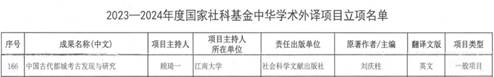 近日,經專家評審、網上公示等各項程序,全國哲學社會科學工作辦公室公布了2023-2024年度國家社科基金中華學術外譯項目、國家社科基金一般項目的立項名單,我院顧琦一教授和蔣怡副教授主持的課題成功獲批立項。