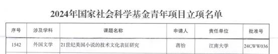 圖2:蔣怡副教授獲國家社科基金青年項目立項