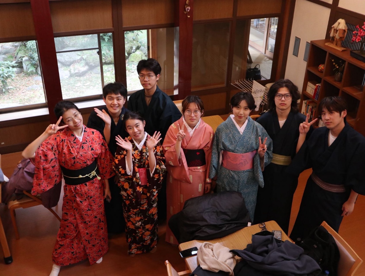 研學期間,同學們深度沉浸于日本傳統文化體驗。在和服體驗中,身著精美和服漫步古街,感受日本傳統服飾的獨特韻味;于茶道體驗里,在寧靜茶室研習茶道禮儀,領悟“和、敬、清、寂”的茶道精神;在太鼓體驗時,跟隨老師激情澎湃的指導,奮力敲擊鼓面,體會日本傳統藝術對力量與韻律的極致追求。