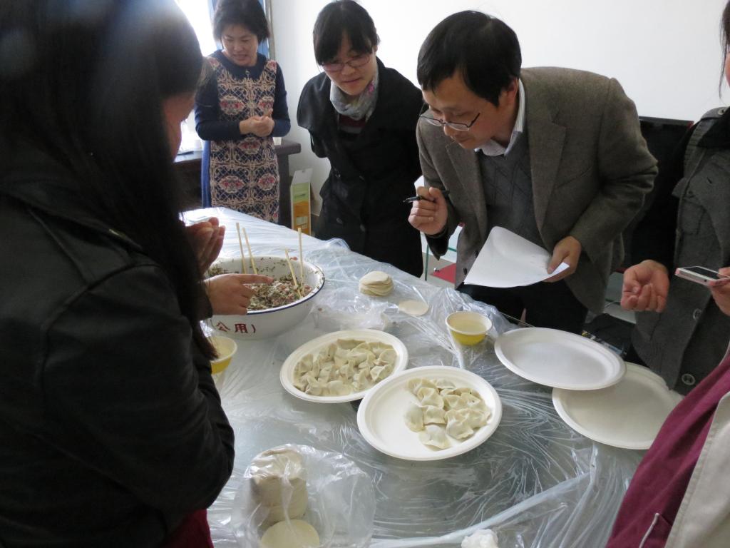外國語學院黨委緊緊圍繞上級黨委部署和要求,多措并舉,扎實推進黨的群眾路線教育實踐活動深入開展。為了進一步加強黨員干部同人民群眾的血肉聯系,同時倡導健康生活理念,關注食品安全,培養良好的生活方式,提升教職工的身體素質,弘揚體育精神,外國語學院教工行政黨支部于4月4日中午開展了主題為“健康生活,愉快工作”的系列黨日活動,支部全體黨員均參加了本次活動,學院黨委委員龔曉斌老師、張曉虹老師、施惠平老師也應邀參加。活動現場氣氛十分熱烈,不時傳來陣陣歡笑和掌聲,許多非黨員教職工也前來現場觀摩,并參與活動。本次活動分為兩場,第一場為包餃子及吃餃子大賽,第二場為乒乓、羽毛球友誼賽。