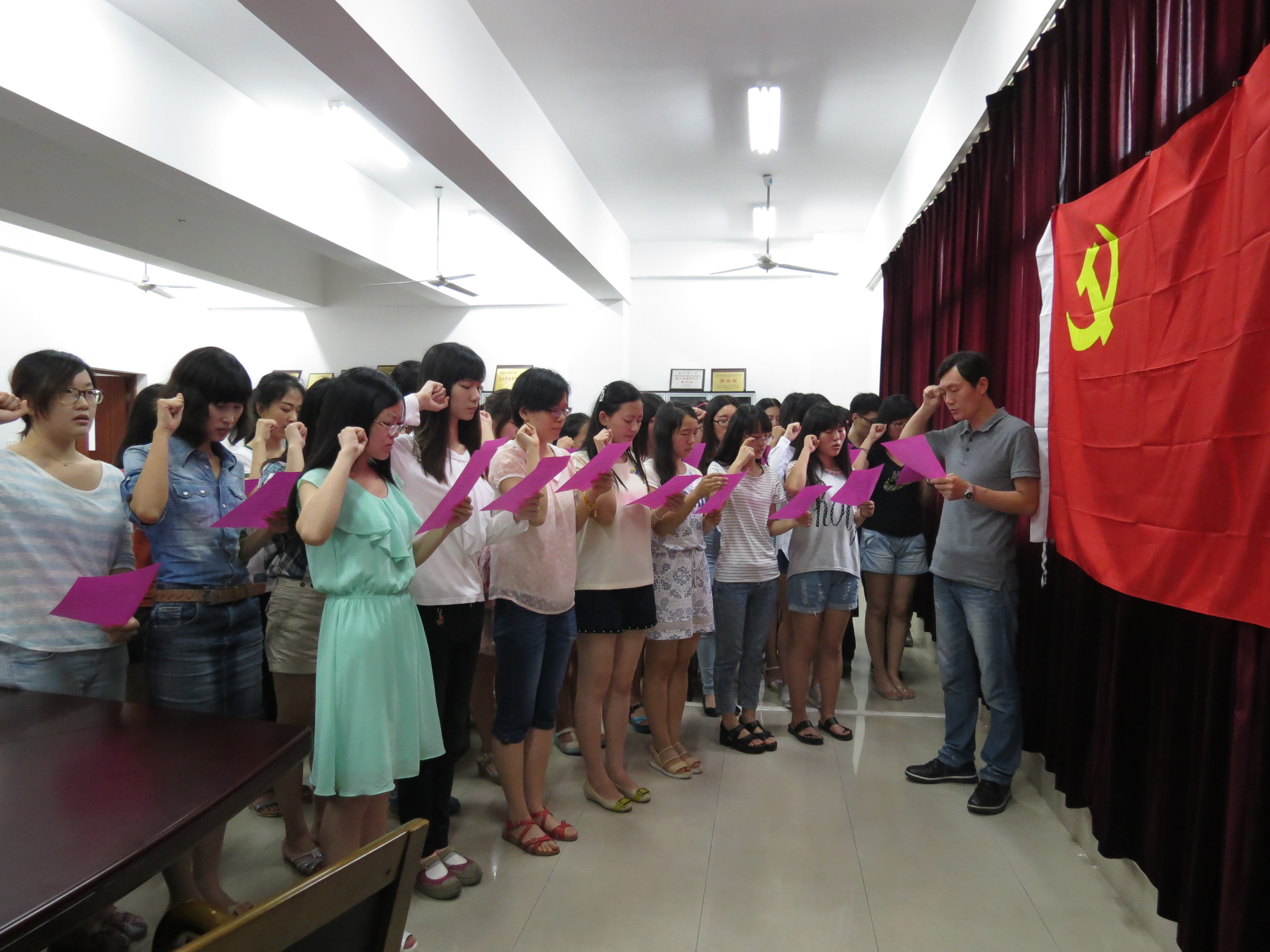 月30日下午,2015年外國(guó)語(yǔ)學(xué)院新黨員“七一”宣誓大會(huì)在文科樓A349會(huì)議室舉行。學(xué)院黨委副書(shū)記趙瑩、黨委秘書(shū)許廣玉、12級(jí)黨支部書(shū)記王琰玲、13級(jí)黨支部書(shū)記林天飛以及全體新黨員參加儀式,儀式由王琰玲老師主持。