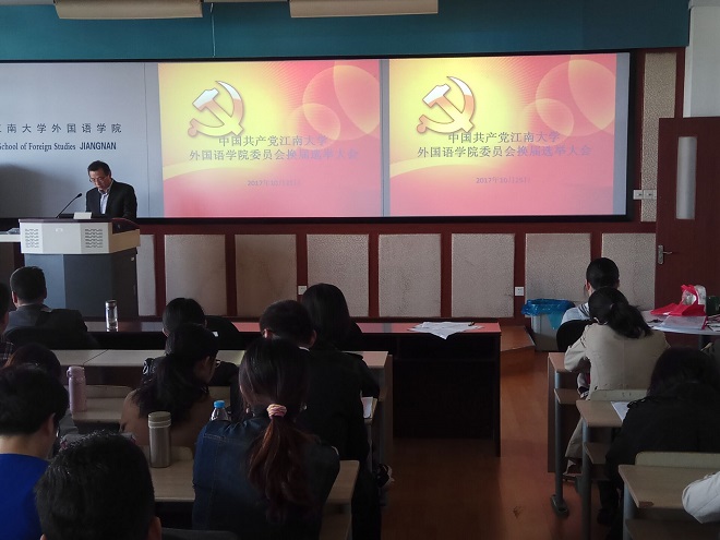 10月25日下午,外國(guó)語(yǔ)學(xué)院黨委換屆選舉大會(huì)在2C618隆重召開(kāi)。