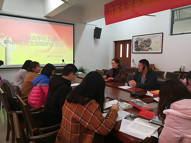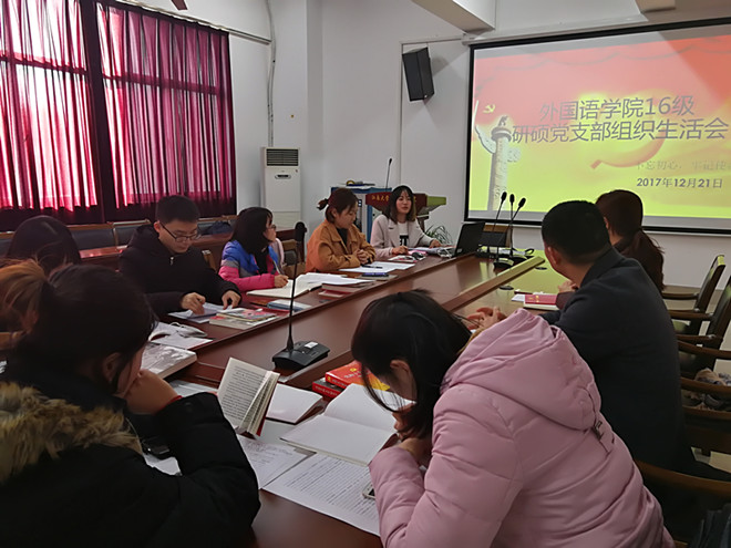 12月21日下午,外國語學院2016級研究生黨支部開展黨支部組織生活會,學校組織部副部長張海峰、外國語學院黨委副書記趙瑩、分團委書記楊艷應邀列席,黨支部全體黨員參加支部生活,會議由支部書記滕兆梅主持。