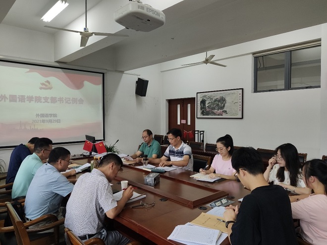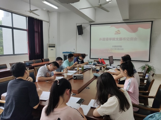 9月29日下午,外國語學院新學期黨建工作部署會暨黨支部書記例會在文科樓A349會議室召開,學院全體教工支部和學生支部的支部書記參會。會議由學院黨委書記史志洪主持。