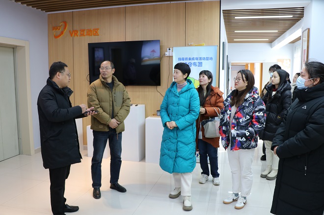 第一站,外國語學院師生一行來到友誼村黨群服務中心,參觀未成年保護工作站、眾創空間、電商直播間等。服務中心聚焦一老一小、青年創客,依托省級眾創空間,構建“黨建+電商”模式,結合青年創業、巾幗創業,為日益多元的創新創業主體提供各類支撐平臺。除此之外,服務中心還重點打造“直播助農”品牌,發展農村電子商務,助力農村經濟發展。李榮華提出,直播經濟的蓬勃發展點燃了創新創業的“新引擎”,是實現產業興旺的有效途徑。