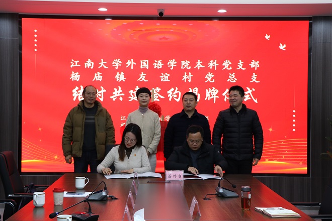 22日下午,外國語學院本科黨支部與揚州市邗江區楊廟鎮友誼村黨總支結對共建簽約揭牌儀式在楊廟鎮人民政府舉行。友誼村黨總支負責人李源就友誼村黨建引領、鄉村振興、經濟增收等方面向大家詳細介紹了本村情況。李源表示,通過鄉村振興戰略的落地實施,友誼村走上了“一步一臺階”的發展之路,年經濟收入穩步上升。他提出,外國語學院與友誼村的黨建共建,不僅能夠實現資源共享、優勢互補,更為鄉村振興和青年人才培養搭建了一個良好的平臺。