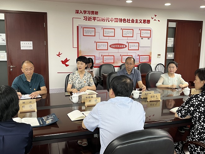 詹熠對外國語學院一行來訪表示熱烈歡迎,他指出,雙方將圍繞推動高等教育高質(zhì)量發(fā)展和無錫外事工作高質(zhì)量發(fā)展時代新課題,整合市校資源和黨建資源,構(gòu)筑上下相通、左右聯(lián)動的黨建工作網(wǎng)絡,以“圍繞目標抓黨建、抓好黨建促發(fā)展”為共建思路,推動雙方在主題教育、實習基地、國際月活動等諸多方面的共建機遇,進一步開拓廣闊合作空間。