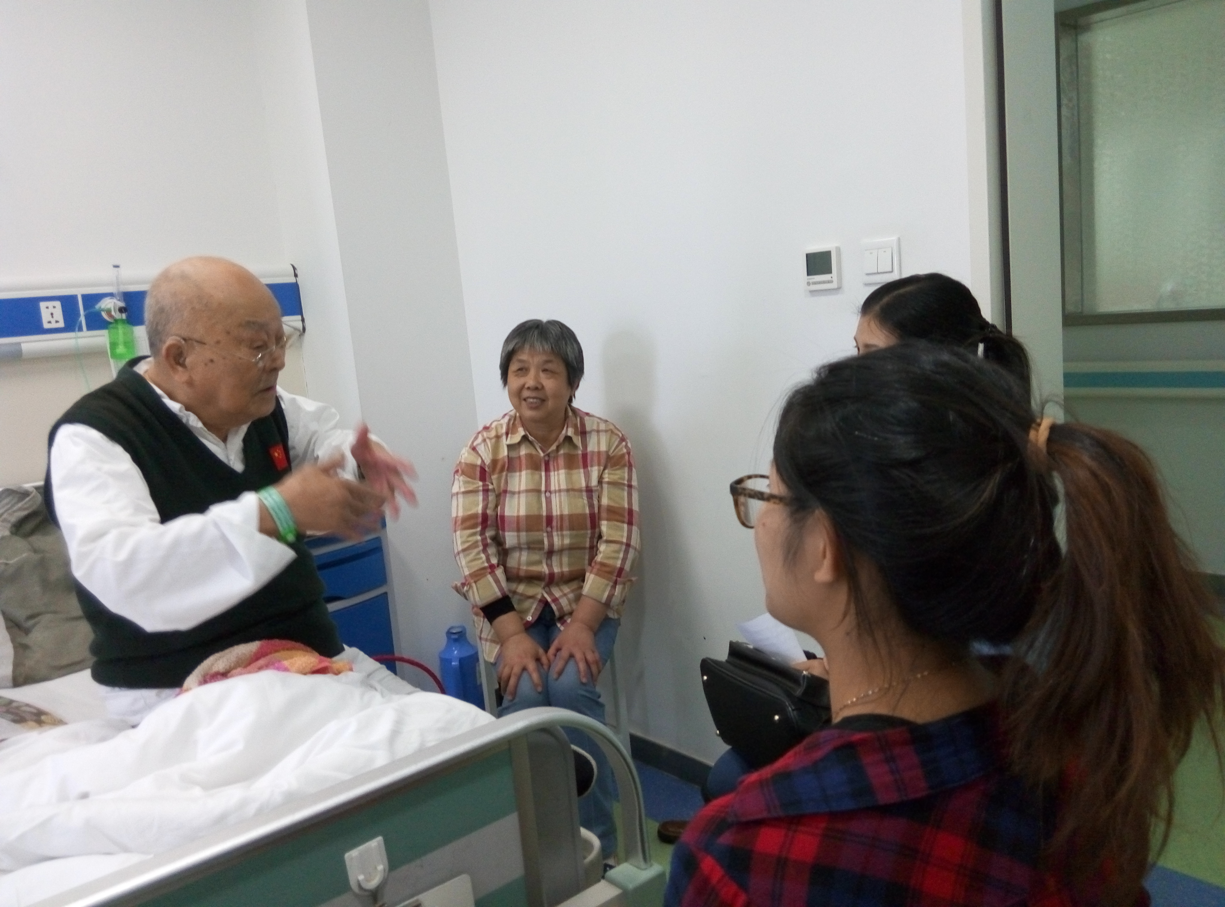 初次見到孫家金老前輩,同學們就被他盡管九十二歲的年紀但依舊鏗鏘挺拔的聲音和身影所吸引。他熱情地招呼我們,開始為我們講述他一路走來對中國發展的見證與希冀。