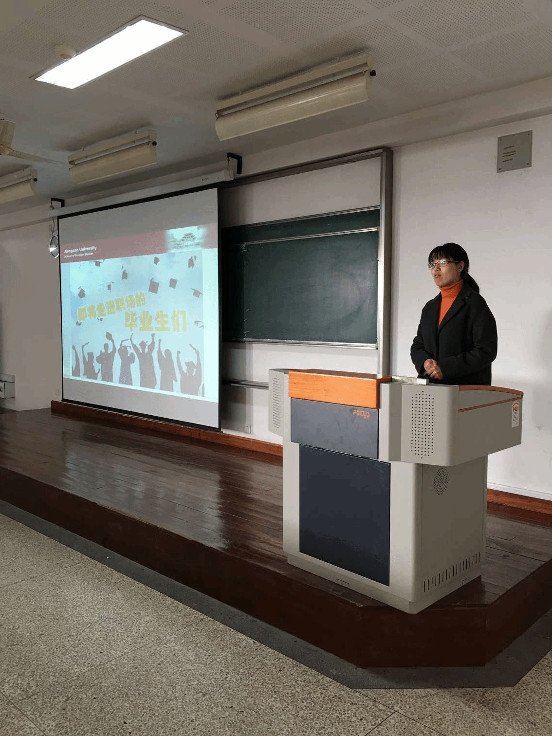 趙瑩老師則向同學們解讀了外國語學院近幾年畢業生的就業率、就業方向和考研率,強調我院畢業生的就業、升學情況良好。趙老師強調同學們要盡快認清就業形勢,強化就業意識,希望同學們能主動出擊,通過多種渠道積極拓寬就業面。