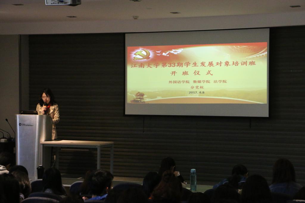 黨課培訓班開班儀式由外國語黨委副書記趙瑩老師主持,她介紹了此培訓班的開班意義及目的,并將我校黨建工作和入黨積極分子培訓工作進行了說明。趙老師在強調跟隨黨的道路的重要性的同時,也表達了對在座所有積極入黨的同學的深切期盼。她對培訓班的紀律問題進行了強調,對同學們提出了認真自律的要求。在同學們熱烈的掌聲中,簡單的開課儀式就此結束。