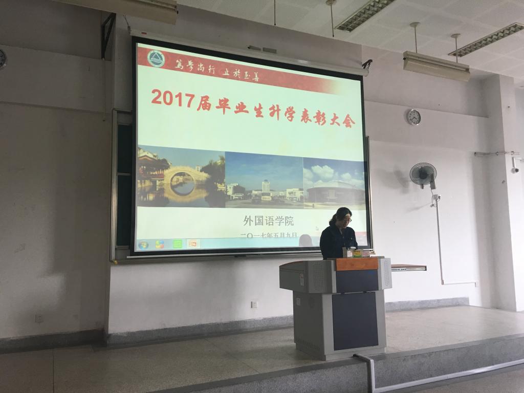 2017年5月9日,外國語學(xué)院2017屆學(xué)生升學(xué)表彰大會(huì)暨升學(xué)經(jīng)驗(yàn)分享會(huì)在2A127教室召開。院黨委黃城芳書記、英語系李學(xué)寧主任、日語系崔明姬主任、輔導(dǎo)員劉琦老師等應(yīng)邀出席會(huì)議。會(huì)議由錢薇薇老師主持。