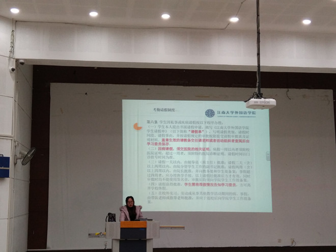 為促進(jìn)學(xué)風(fēng)建設(shè),落實(shí)高校思想政治工作會(huì)議精神,鞏固學(xué)風(fēng)建設(shè)階段性成果,進(jìn)一步完善學(xué)生班風(fēng)學(xué)風(fēng)等一系列措施,近日,外國(guó)語(yǔ)學(xué)院開展了一系列學(xué)風(fēng)促進(jìn)相關(guān)活動(dòng)。12月15日下午2015級(jí)學(xué)風(fēng)促進(jìn)會(huì)在第一教學(xué)樓1C109順利召開。2015級(jí)全體同學(xué)在張圓老師和兼職輔導(dǎo)員史荷敏的帶領(lǐng)下認(rèn)真學(xué)習(xí)了學(xué)校、學(xué)院考風(fēng)考紀(jì)相關(guān)規(guī)章制度。
