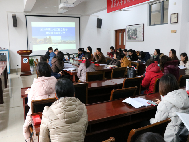 隨后楊艷就2018年學院學生工作進行總結匯報。她從班級建設、學風建設、團支部建設等方面回顧了2018年的工作,具體解讀了我院新制定頒布的班主任獎勵辦法,公布了2017-2018學年班主任獎勵提名名單,并邀請獲獎班主任進行經驗交流分享。
