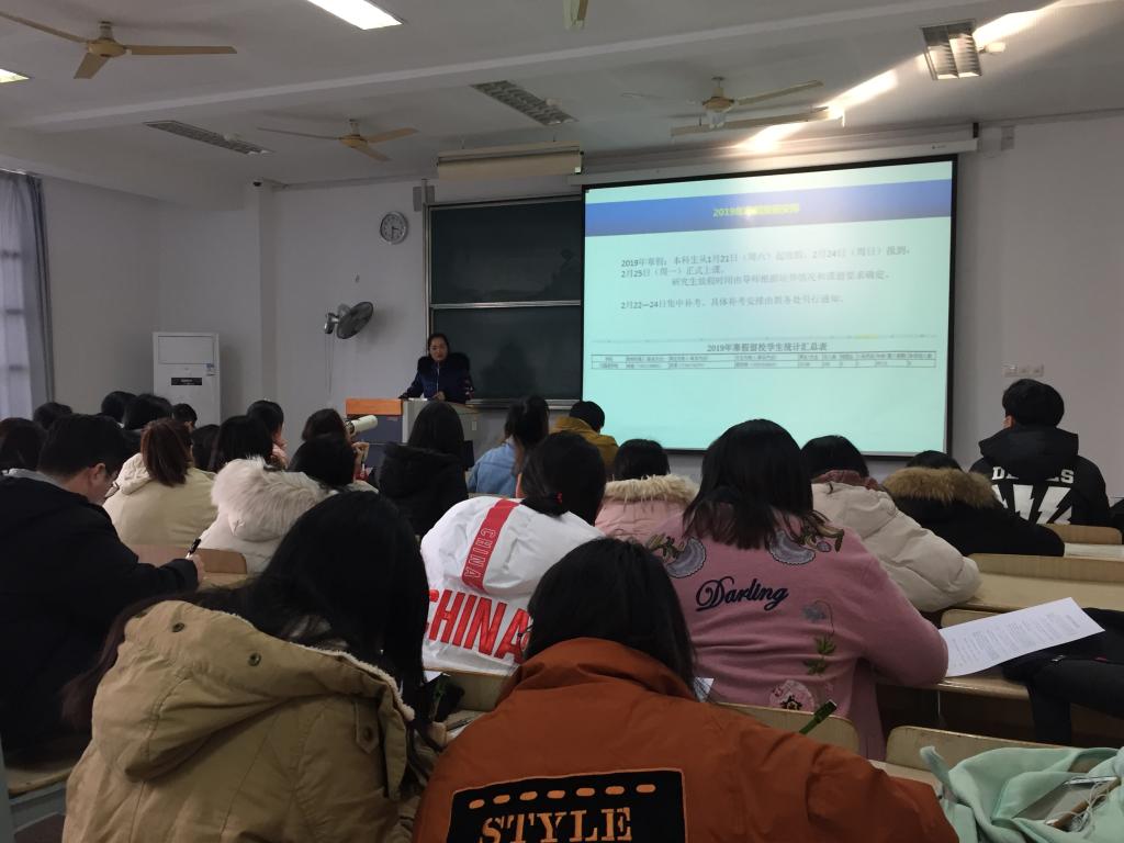 會上,楊艷老師首先就寒假留校期間的注意事項和紀律要求進行了詳細的講解,并要求同學(xué)們簽署留校安全承諾書。她提醒學(xué)生們在假期中注意保護個人財產(chǎn)安全,遵守宿舍管理安排,自覺做好防火、防電、防騙、防盜等安全工作,并叮囑同學(xué)們在外出兼職時要注意安全保護好自己。楊老師還強調(diào)了同學(xué)們要注意預(yù)防流感,在室內(nèi)多開窗通風(fēng),若有身體不適及時就醫(yī)。