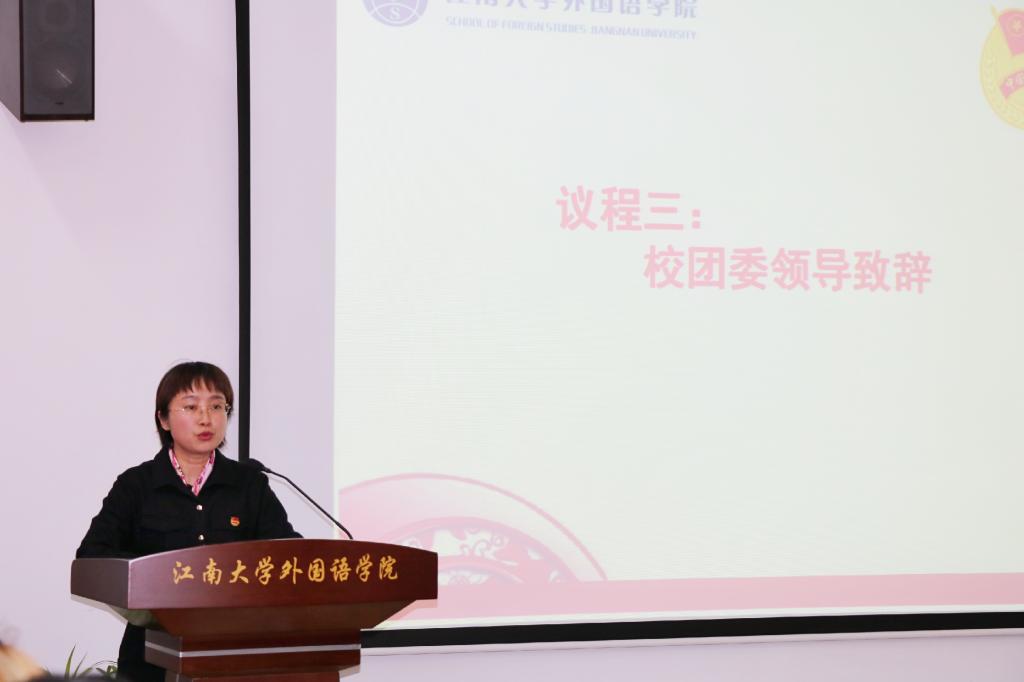 隨后,校團委副書記單云婷老師致辭。首先單書記對入圍青馬訓(xùn)練營的同學(xué)表示熱烈的祝賀,她提出要保持團組織的先進(jìn)性,用習(xí)近平新時代中國特色社會主義思想的理論武裝自身,武裝全團;更重要的是,要緊跟黨的領(lǐng)導(dǎo),堅定習(xí)近平新時代中國特色社會主義思想,保持思想與黨中央高度一致。她囑托在座青馬訓(xùn)練營營員能夠在本次青馬訓(xùn)練營中體會馬克思主義的偉大意義,堅定理想信念,學(xué)習(xí)理論知識,并以青馬為起點,“學(xué)有所得,學(xué)有所成”。