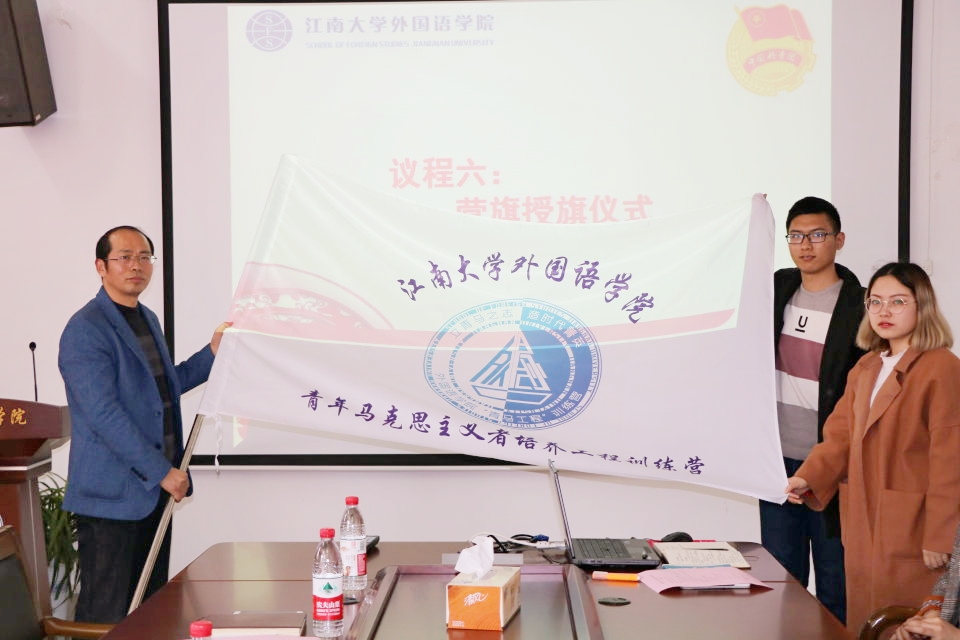 楊艷老師對“青馬工程”培訓(xùn)方案做了簡要介紹,為大家講解計劃安排,并公布了學(xué)員分組情況及任命名單。營旗授旗儀式結(jié)束后,學(xué)員代表白競怡發(fā)言,她代表全體學(xué)員宣誓,爭取成為知識有所進(jìn)步、能力有所提高、思想上成熟的青年馬克思主義者。