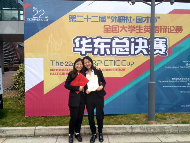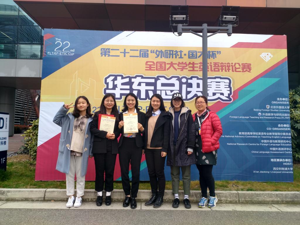 2019年3月22日至24日,第二十二屆“外研社·國(guó)才杯”全國(guó)大學(xué)生英語辯論賽華東賽區(qū)總決賽在蘇州西交利物浦大學(xué)舉行。來自江蘇、安徽、上海、浙江、山東5省市的110支高校代表團(tuán)參加了本次比賽,爭(zhēng)奪28個(gè)全國(guó)總決賽晉級(jí)名額。最終來自上海外國(guó)語大學(xué)、國(guó)防科技大學(xué)國(guó)際關(guān)系學(xué)院和復(fù)旦大學(xué)的隊(duì)伍分別獲得地區(qū)賽的冠軍、亞軍和季軍。我院英語專業(yè)1605班學(xué)生田怡凡和戚淼代表我校參加比賽,最終排名第16,成功晉級(jí)全國(guó)賽。