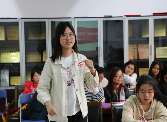 在聆聽(tīng)了老黨員的分享后,青年學(xué)生也紛紛談了自己對(duì)初心的感悟。英語(yǔ)1805班石超琴分享了自己對(duì)初心的理解,由此思考我們黨團(tuán)共建的初心是引領(lǐng)青年健康成長(zhǎng),成長(zhǎng)為國(guó)之棟梁、民族希望。英語(yǔ)1803班張英杰認(rèn)為初心是對(duì)夢(mèng)想的堅(jiān)守,無(wú)論在哪里,堅(jiān)持夢(mèng)想,初心永在。史雪茹、楊鑫科、夏琴美、洪智超等同學(xué)分別分享了自己的青春故事和初心夢(mèng)想。從同學(xué)們的發(fā)言中,了解了大家對(duì)初心的理解,更感受到了青年的夢(mèng)想與希望。在場(chǎng)的老黨員對(duì)團(tuán)員代表的發(fā)言表示肯定與贊揚(yáng)。