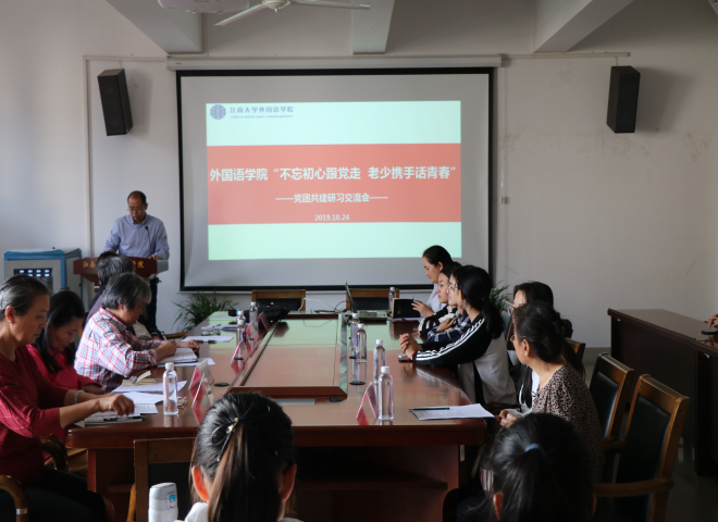 為扎實(shí)開(kāi)展“不忘初心、牢記使命”主題教育,推進(jìn)黨建帶團(tuán)建工作,激勵(lì)青年學(xué)生堅(jiān)守初心、砥礪奮進(jìn),10月24日下午,外國(guó)語(yǔ)學(xué)院在學(xué)院A349會(huì)議室開(kāi)展了“不忘初心跟黨走,老少攜手話青春”黨團(tuán)共建研習(xí)交流會(huì)。本次交流會(huì)邀請(qǐng)了機(jī)關(guān)退休第四黨支部、社橋退休黨支部老黨員同志參加。外國(guó)語(yǔ)學(xué)院黨委副書(shū)記、副院長(zhǎng)劉伯賢,學(xué)院分團(tuán)委書(shū)記楊艷以及雷鋒團(tuán)支部、張聞天團(tuán)支部全體成員出席會(huì)議。會(huì)議由劉伯賢老師主持。