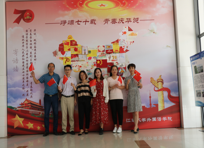 青春獻禮慶華誕,砥礪奮進正當時。在中華人民共和國成立七十周年之際, 外國語學院在國慶節(jié)來臨之際通過系列活動以青春告白祖國。心中有大愛,心向中國紅,外院師生與國旗合影,與國旗同在,以實際行動書寫青春華章,祝福祖國繁榮富強。