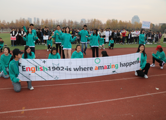 運(yùn)動(dòng)會(huì)開(kāi)幕式在國(guó)歌聲中拉開(kāi)序幕。在班級(jí)風(fēng)采展示環(huán)節(jié),各班級(jí)學(xué)生邁著矯健的步伐,昂首依次入場(chǎng),班級(jí)口號(hào)、班級(jí)隊(duì)形、班級(jí)表演等彰顯了外國(guó)語(yǔ)學(xué)院學(xué)子積極向上、樂(lè)觀自信的精神風(fēng)貌。