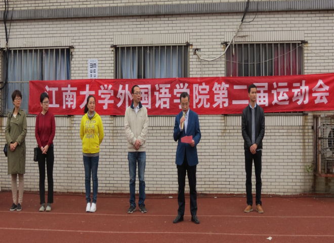 外國(guó)語(yǔ)學(xué)院院長(zhǎng)方文開(kāi)教授宣布js3333線路檢測(cè)中心第二屆運(yùn)動(dòng)會(huì)開(kāi)幕。