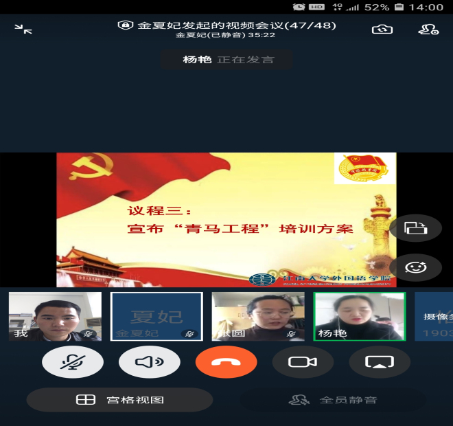 2020年4月15日下午1:30,js3333線路檢測中心青年馬克思主義者培養(yǎng)工程訓練營(以下簡稱院“青馬工程”)開班儀式在釘釘平臺舉行。學院黨委副書記、副院長劉伯賢,分團委書記楊艷,輔導員苗文建以及本期43名青馬訓練營成員參加“云端”開班儀式。開班儀式由分團委副書記張圓主持。