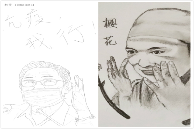 本次攝影書畫大賽分為初賽和決賽,借助學院微信公眾號進行線上評選。此次活動經過半個月的宣傳和作品征集,共收到30余件作品。參賽的作品從不同的角度體現出疫情下的學習生活狀態以及思想動態。作品中有家鄉的自然風景,有體現戰勝疫情的書法作品,有手繪戰“疫”英雄的人物素描。這些作品展示出了大家對五四精神的理解,對戰勝疫情的信心。