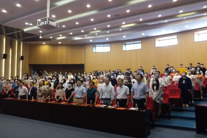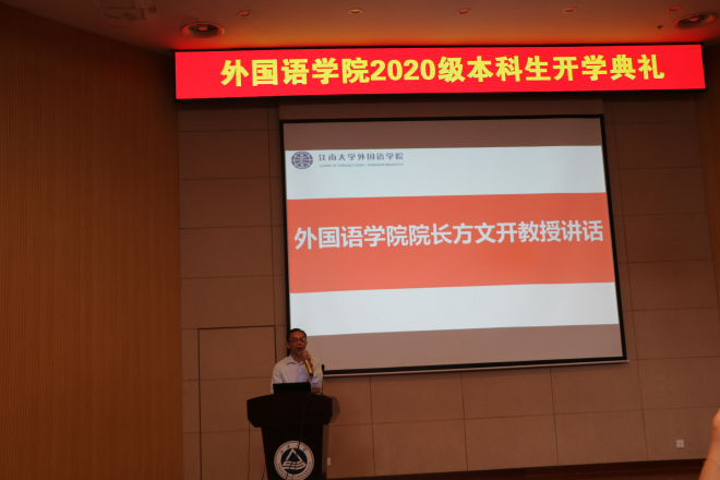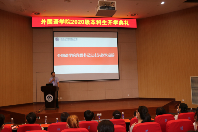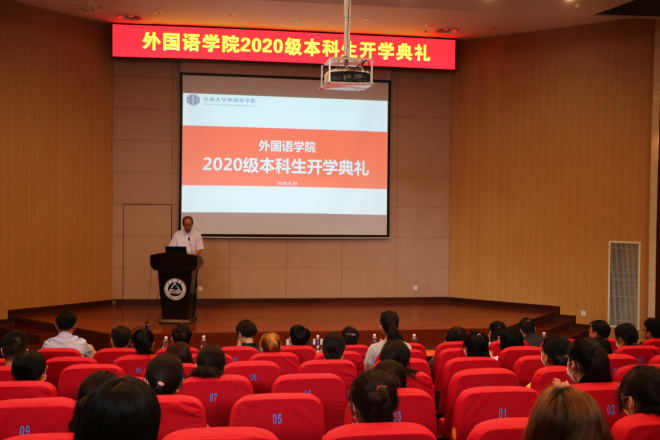 9月20日上午10:00,外國語學院2020級新生開學典禮在遠東報告廳舉行。外國語學院領導班子全體成員、學院教授代表、專業系主任、兩辦主任、學工輔導員、班主任以及20級全體新生參加開學典禮。開學典禮由黨委副書記、副院長劉伯賢主持。