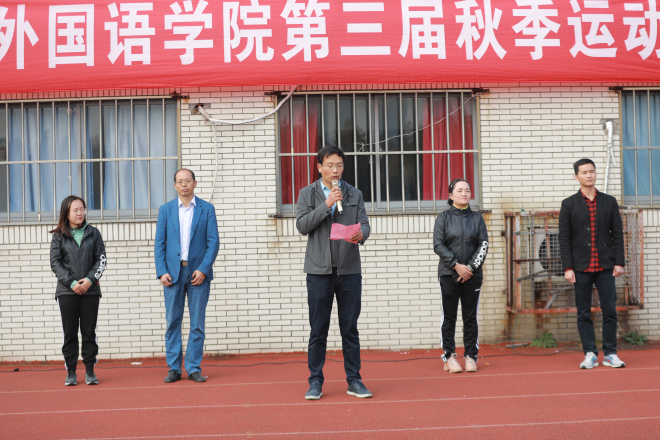 外國語學院黨委副書記劉伯賢宣布js3333線路檢測中心第三屆秋季運動會開幕。