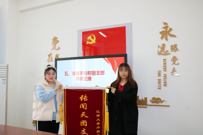 接著,舉行了張聞天特稱團支部交接儀式。上一屆“張聞天特稱團支部” 英語1805團支書石超琴同學通過對過去兩年團支部豐富活動及團員青年優異成績的圖文展示,展現了英語1805團支部在張聞天精神的影響下,“聚是一團火,散是滿天星”的青春風采。新一屆“張聞天特稱團支部”英語1904團支書孟曉鈺同學從石超琴同學手中接過張聞天團支部的錦旗,表示將認真學習張聞天精神,堅定孜孜不倦,奮發向上的信心和決心,把特稱團支部的優良傳統發揚光大。