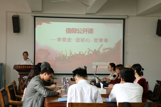 4月28日下午2:00,“學(xué)黨史?話初心?致青春”主題信仰公開(kāi)課在外國(guó)語(yǔ)學(xué)院A349舉行。js3333線路檢測(cè)中心原黨委副書記、關(guān)工委常務(wù)副主任婁國(guó)棟、外國(guó)語(yǔ)學(xué)院分團(tuán)委書記陸芳、英語(yǔ)1904班主任高松怡、19級(jí)輔導(dǎo)員苗文建出席本次活動(dòng)。17級(jí)優(yōu)秀學(xué)生代表、英語(yǔ)1904張聞天特稱團(tuán)支部全體成員以及20級(jí)班團(tuán)干部參加了此次公開(kāi)課。信仰公開(kāi)課由蓋文靜同學(xué)主持。