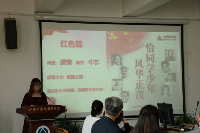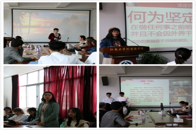 首先,英語(yǔ)1904團(tuán)支書孟曉鈺分享了《致青春》的主題團(tuán)課。她將團(tuán)課分為“紅色篇”、“綠色篇”與“金色篇”三個(gè)部分。在“紅色篇”中,她向大家講述了鄧恩銘、鄧中夏、周恩來(lái)等人的革命故事,“紅色篇”是希望,激情,魄力,斗志與愛(ài)國(guó)之心的體現(xiàn);在“綠色篇”中,守護(hù)丹頂鶴女孩徐卓的故事令人敬佩。“金色篇”是奉獻(xiàn)與堅(jiān)守的象征,英勇的戰(zhàn)士陳祥榕,誓死捍衛(wèi)祖國(guó)疆土,他是人民的好戰(zhàn)士,令父親為之自豪的好兒子。主題團(tuán)課結(jié)束后,在場(chǎng)學(xué)生就“青春與夢(mèng)想”談了自己的感想:新時(shí)代青年應(yīng)當(dāng)堅(jiān)定理想信念,勇于創(chuàng)新創(chuàng)造,錘煉高尚品格,練就過(guò)硬本領(lǐng),永遠(yuǎn)保持著艱苦奮斗的精神。