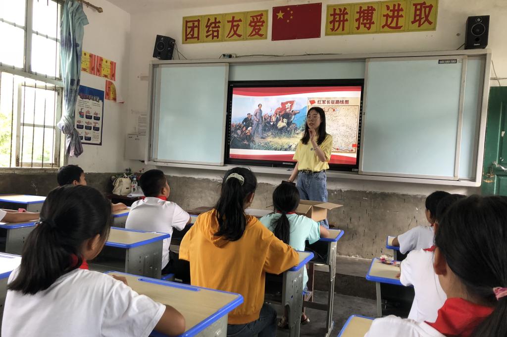 江南情意暖,獨洞不孤獨。實踐團成員們來到從江縣洛香鎮獨洞小學調研基礎英語教學現狀。在了解到英語教學資源緊缺后,立即表示愿意利用外國語學院的專業優勢幫助獨洞小學完善課程體系建設,并計劃組織學院學生與當地孩子們連線,開展在線教學。實踐團中的黨員還為獨洞小學四五年級的學生講授了一堂黨史微課,帶領孩子們回顧了建黨百年歷程中的閃光事跡。課后,實踐團成員前往獨洞村建檔立卡戶等貧困學生家中進行走訪,并選定3名最貧困的學生給予每人每年1200元的愛心助學基金資助,直至其完成小學學業。