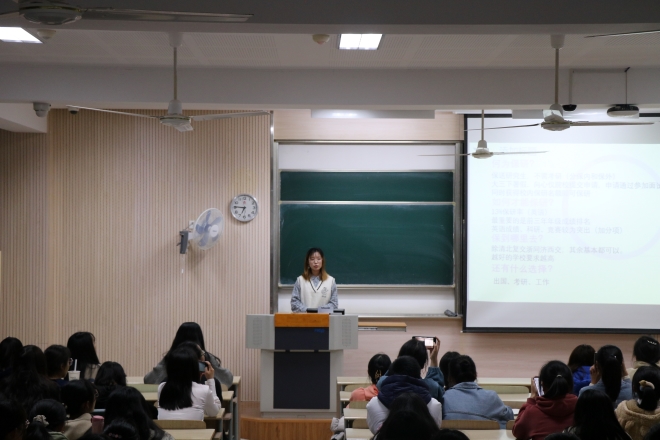 成功保研至南京大學的仲洲瑤主要向大家分享了自己保研的學習經歷,在分享過程中,她提到了三個關鍵詞:興趣、效率、競賽。保研至華中科技大學的周心怡主要進行專業保研分享,她圍繞“學涯規劃、專業課學習、提升軟實力和硬實力”幾個方面進行介紹。獲得國家獎學金的盛曉妍以“志當存高遠,不負少年時”為主題分享了自己獲得國家獎學金的學習經驗。保研至南京大學的史雪茹以“遇見更好的自己”為題進行分享,她分享了自己本科階段的“學習篇”、”生活篇“以及“學習感悟”。經驗分享后,現場的同學也就自己感興趣的問題與四位分享同學進行交流。會后同學表示感觸很深,在今后的大學學習生活中要明確自己的奮斗目標,做好自己對未來的規劃,從而為之不懈地努力奮斗,充實自己的大學生活。