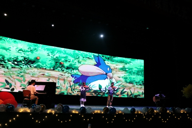 器樂節目《宮崎駿經典曲目演奏》奏響了晚會的第三篇章,校禮儀部的走秀節目《Boom Clap》在舞臺上釋放如火的青春;昭樂相聲社的《學聾啞》與男舞《Fake love》帶給我們視聽上的享受。晚會在眾人的合唱《2035是這樣》中完美落幕。