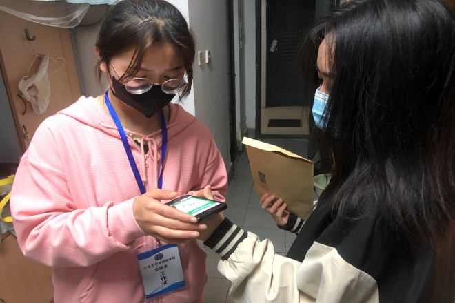 志愿者進(jìn)宿舍進(jìn)行信息排查