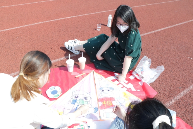 活動現場,大家根據事先設計好的風箏手稿,現場進行繪制工作。雖然紙鳶實際的材質與形狀給同學們帶來了一定的難度,但正因為如此,增加了活動的挑戰性與趣味性。同學們紛紛發揮自己的創意,繪制的風箏充滿春天的氣息、青年的活力、戰勝疫情的希望:以“國粹”為主題,展現了中華文化之美;以“春色”為主題,渲染春的靈動生機;以“抗疫”為主題,歌頌抗疫戰士的奉獻;以“冬奧”為主題,頌揚冬奧體育精神。絢爛的風箏飛向天空,打破了疫情的陰霾,這些風箏將帶著大家美好的愿景與期冀,飛向遠處的藍天。