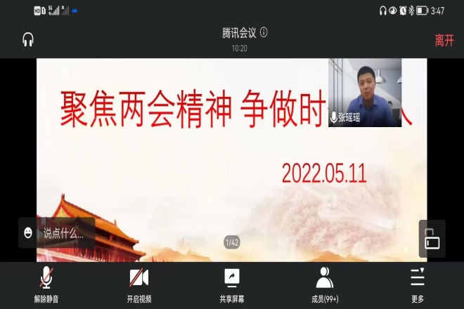 5月11日下午,外國語學院青馬工程訓練營與入黨積極分子培訓班舉辦線上理論學習講座,張瑤瑤老師為大家帶來題為“踐行兩會精神,爭做時代新人”的講座,學生會組織部部長熊雪冰主持會議。