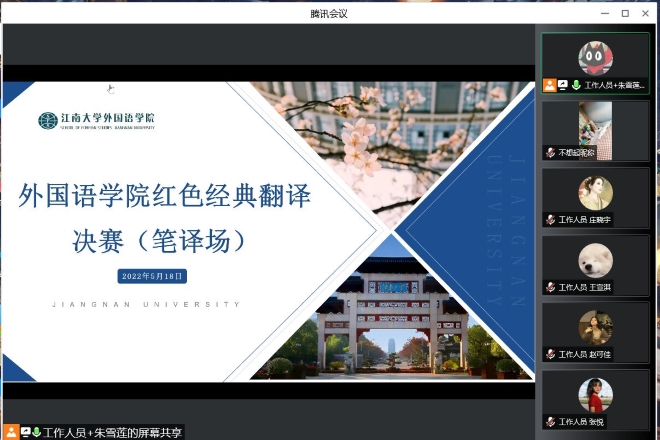 本次紅色經典翻譯大賽分為線上初賽和線上決賽兩部分。前期經過自主報名,全校共有100余名學生報名參加。4月7日經過線上初賽后,選拔36名同學參加最終決賽。受到疫情影響,決賽改在線上進行。5月18日下午在騰訊會議室舉行決賽,決賽分為筆譯和視譯兩個環節,邀請撒忠清老師、王曉靜老師、劉輝老師擔任評委。本次筆譯和視譯的試題均從《中國共青團團史》、《中國共產主義青年團90年》、《共青團書系》、《中國共青團年鑒》、《中國共青團史稿》等紅色經典著作中選取,旨在讓學生重溫紅色經典,激勵青年人用奮斗和拼搏匯聚蓬勃力量,堅定對中國特色社會主義的信念、對共產主義的信仰,同時以賽促學培養學習熱情,提升翻譯專業能力。