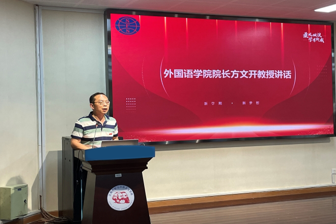 最后,外國語學院院長方文開講話。他對同學們提出希望:用外語講好新時代的中國故事。做到這一點,要理解時代,認識時代,打下扎實基礎,了解中國文化。講好中國故事是當代青年之責任,外院學子定當不負眾望,以時不我待的精神,用外語講好中國故事,講好傳統文化的故事,講好未來的故事。