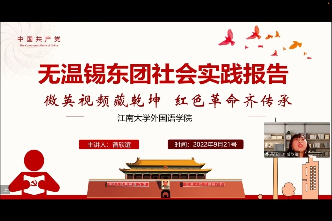解人民之憂,以志愿精神擔起社會責任。“江南春風入百家”實踐團面向防疫一線醫護人員子女開展“趣味知識學習”、“體能鍛煉學習”、“黨史團史學習”等趣味課堂,為醫護人員排憂解難。訪紅色基地,以理論宣講傳承紅色精神?!盁o溫錫東”實踐團實地參觀無錫與溫州的紅色教育基地,并通過雙語vlog傳播中國聲音,助力紅色文化傳播,讓紅色文化“活”起來!探民生現狀,竭自身所能助力社會發展。“譜語江南”實踐團推廣國家通用語言文學,傳承“普通話”文化,承擔歷史使命、助力鄉村振興。