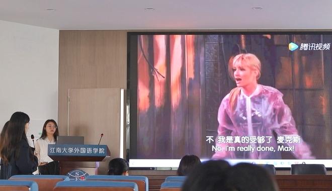 本次決賽分為英語和日語兩條賽道,共12組選手參賽。每一組選手都將英語和日語原版影視作品活靈活現展現在觀眾眼前,將在場的觀眾吸引到影視劇情景當中。配音現場,選手們發音準確,感情充沛,充分展現自身優秀的外語能力,可謂是“神仙打架”,精彩的配音給現場同學帶來一場視覺與聽覺的盛宴。